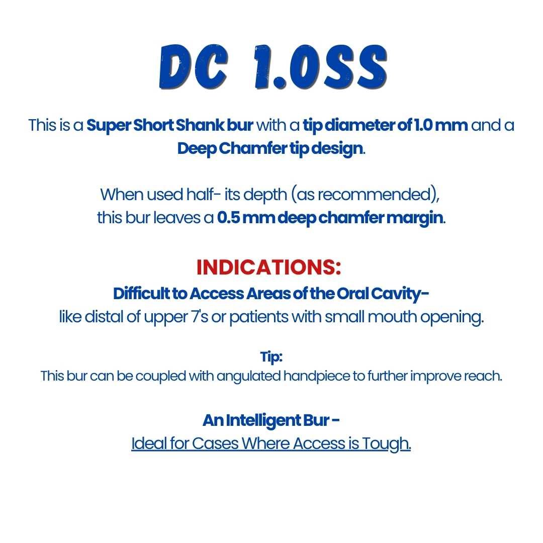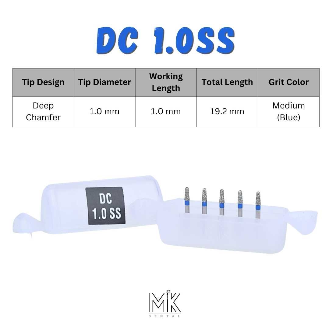 The DC 1.0SS is a Deep Chamfer bur featuring a super short shank and a 1.0 mm tip diameter.
