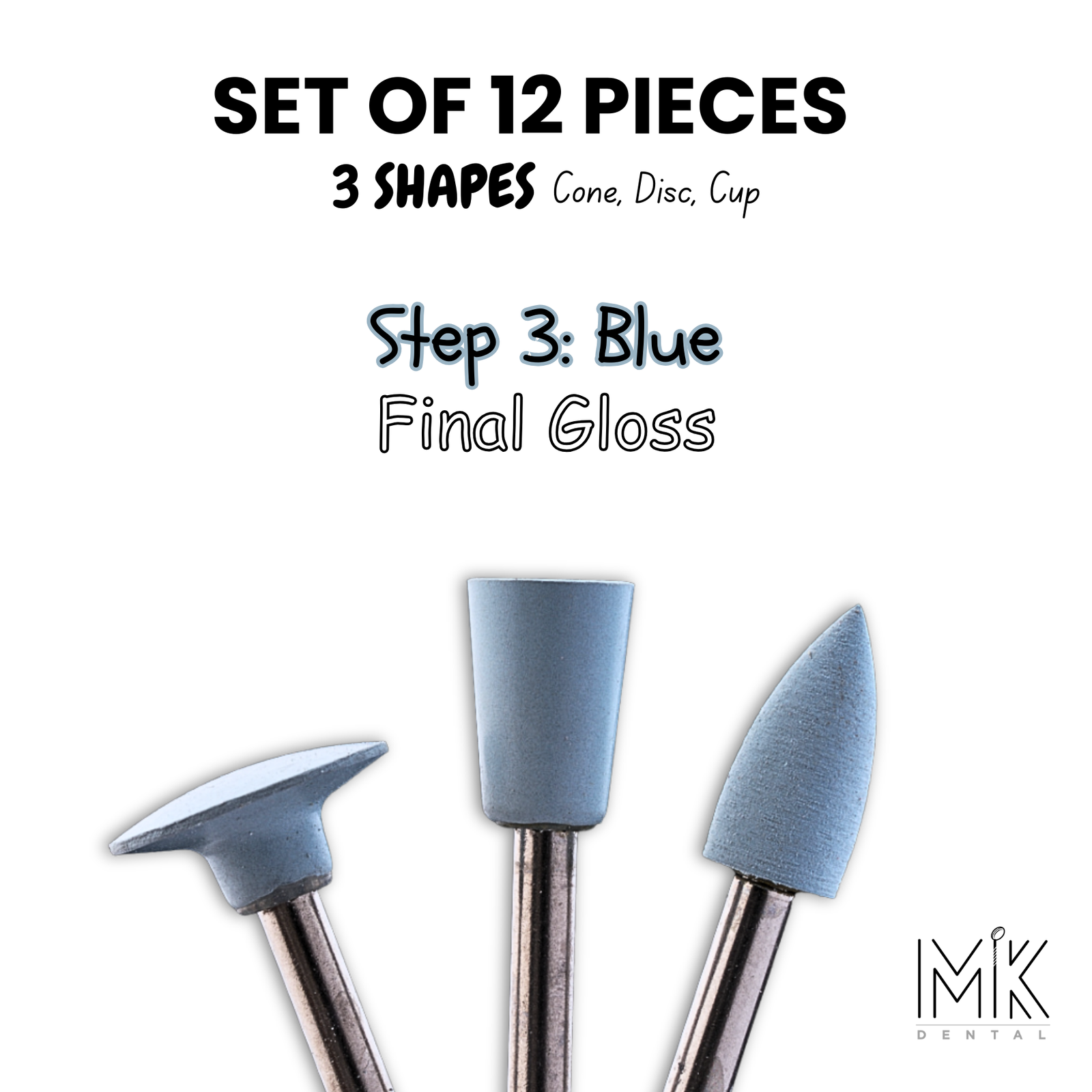 • 3 × Light Blue Super-Fine Polishers (Cone, Wheel, Cup)